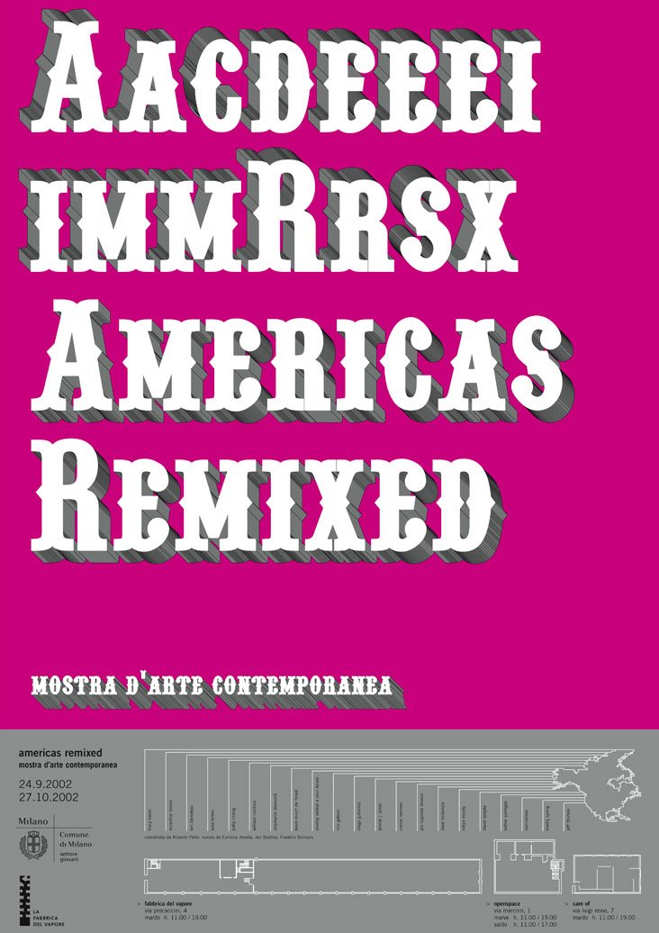 visual identity for the contemporary art exhibition americas remixed: logo, poster, invitation card, catalogue