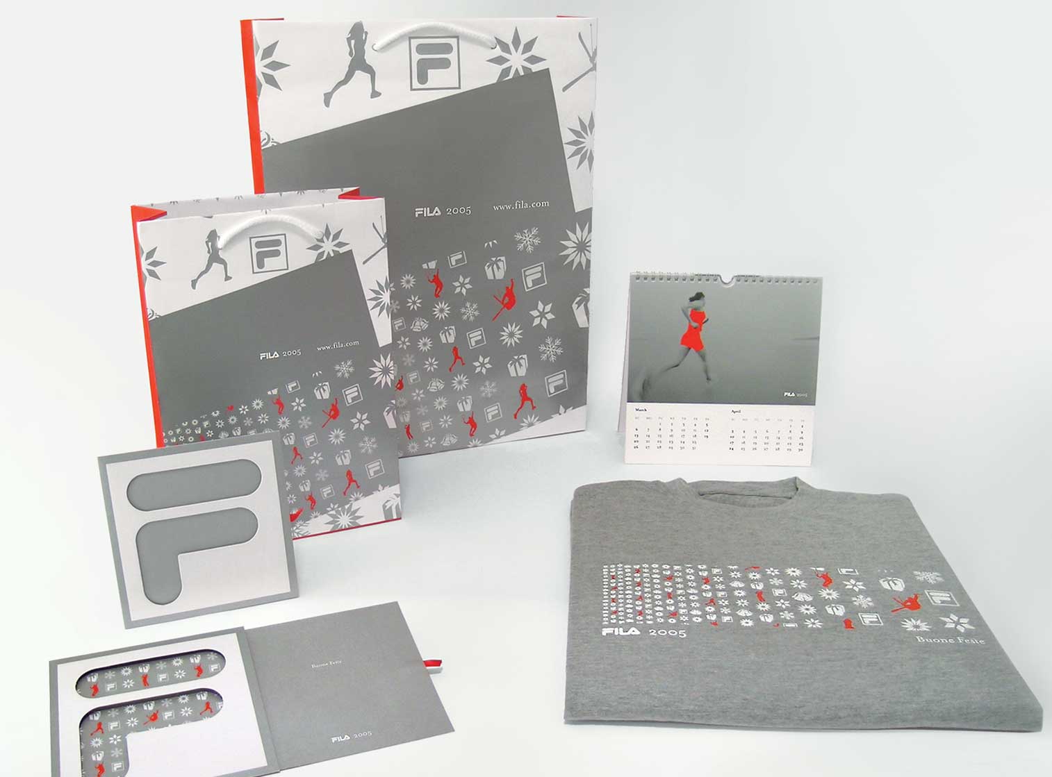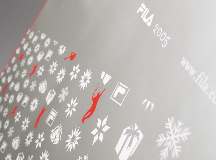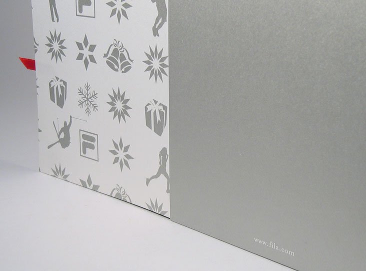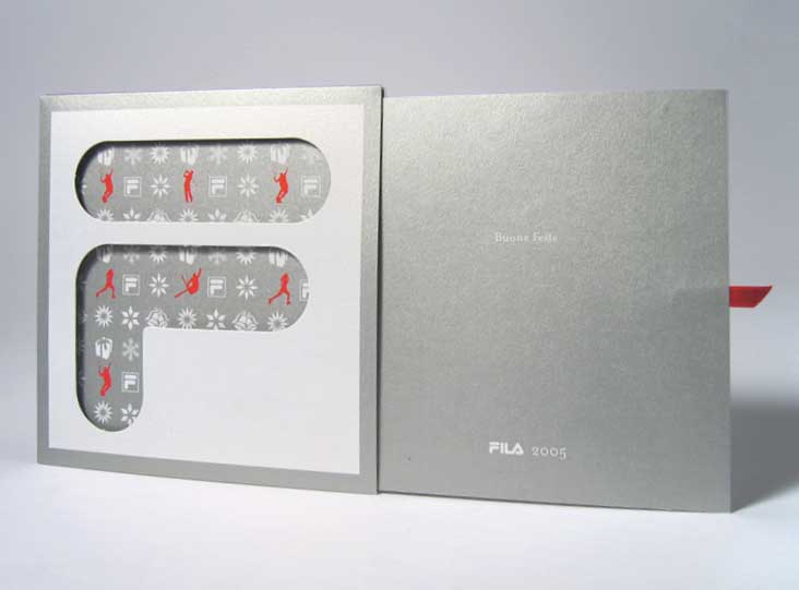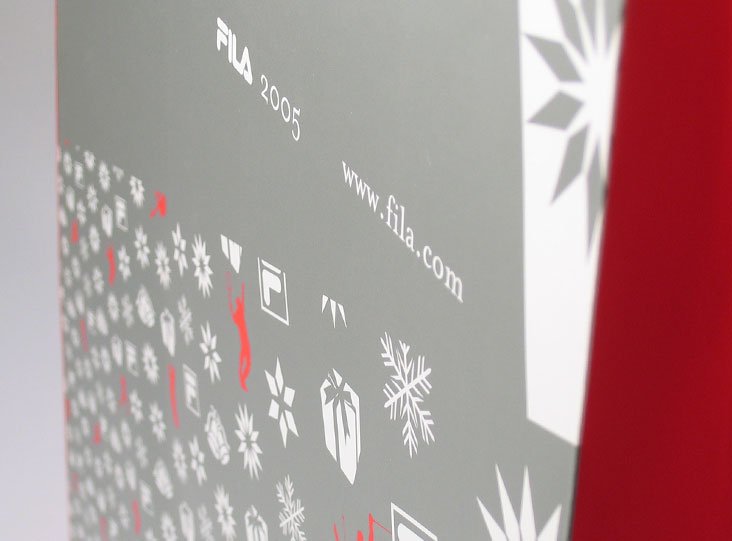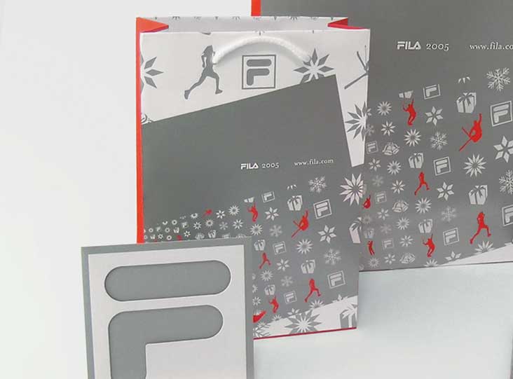fila sport sportswear visual identity for store: p.o.p. material, greeting card, shopper, calendar tags2004identitypackagingprintedfashionsport