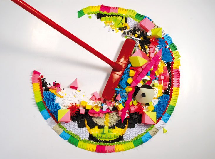 Finally, by this destruction we wanted to ironically recall that so many graphic artifacts tend to disappear very soon simply becoming the tomorrow garbage.