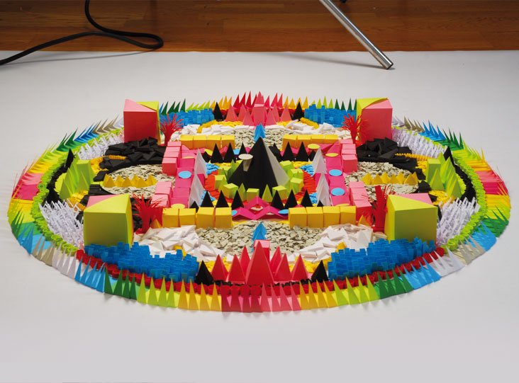 After some time the Buddhist tradition wants that Mandalas are busted up by sweeping its sand away; we believed this gesture is well representing the “destroy to make it better” concept, and also reminds us to avoid to grow fond of a project but, instead, to always try to improve it.