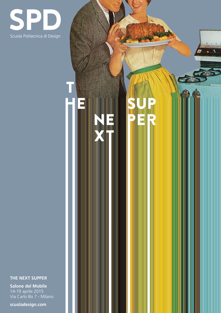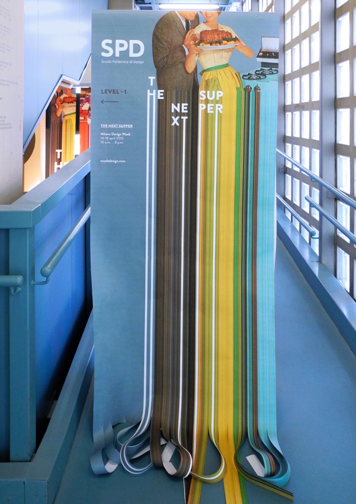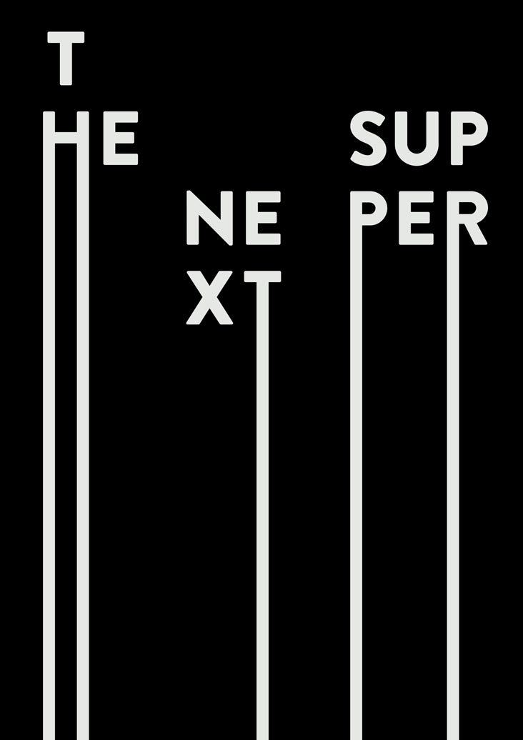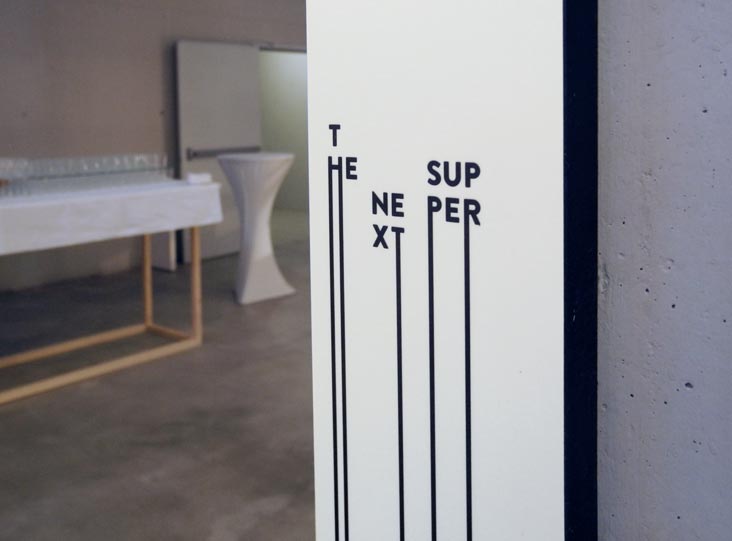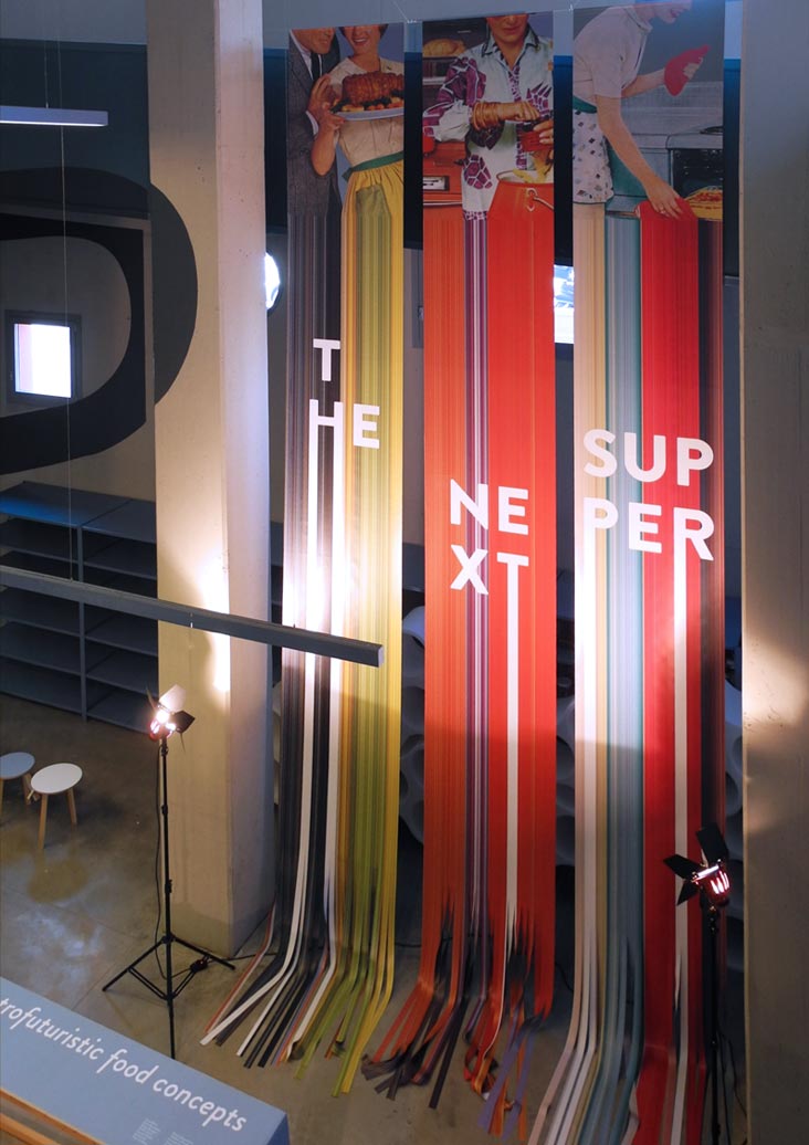 visual identity for the exhibition the next supper – retrofuturistic food concepts: logo, poster, installation, signage