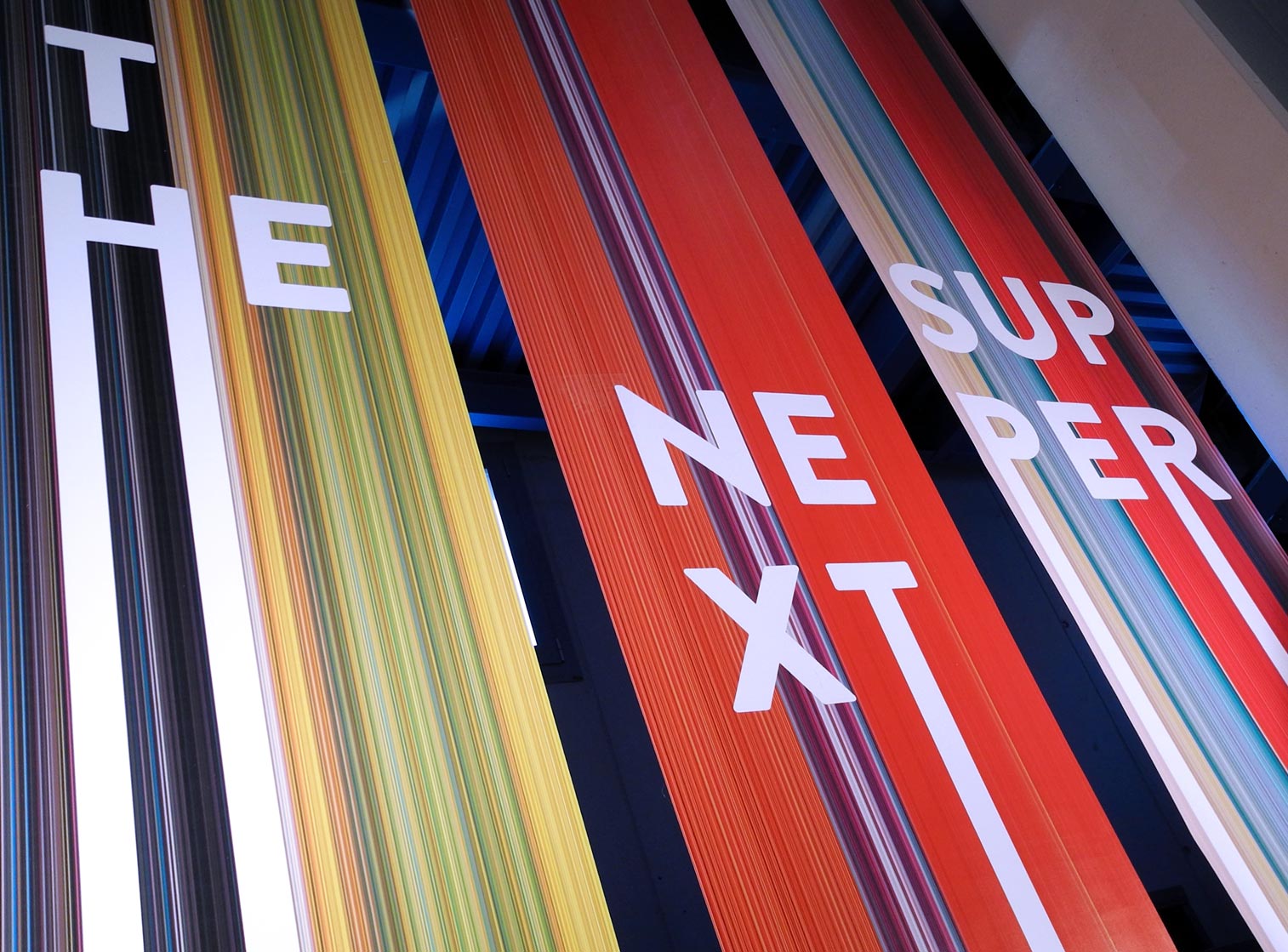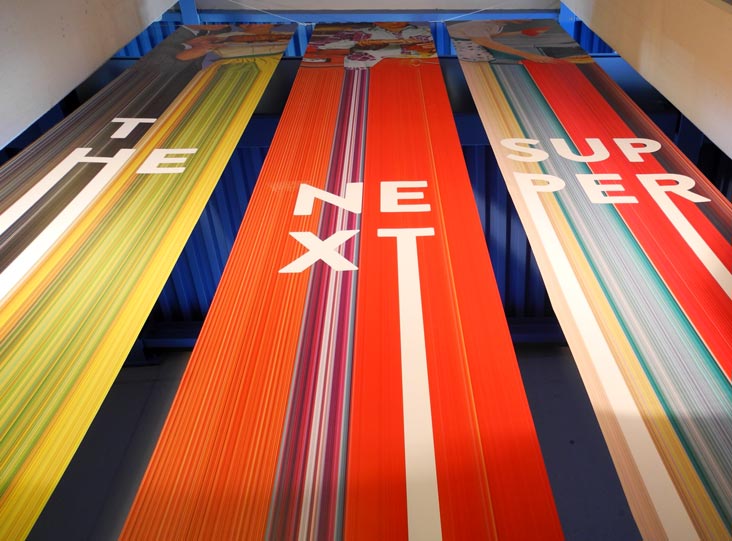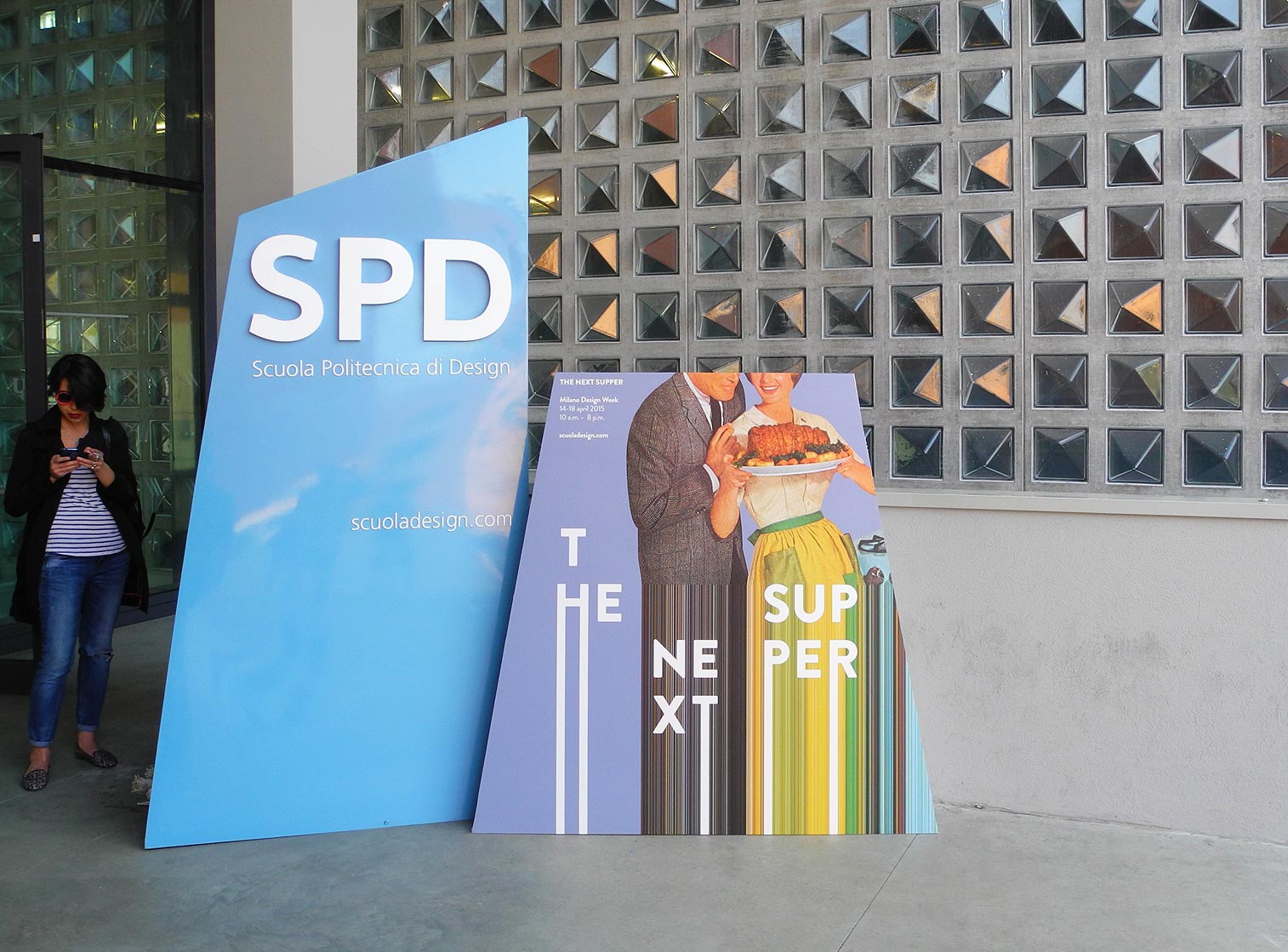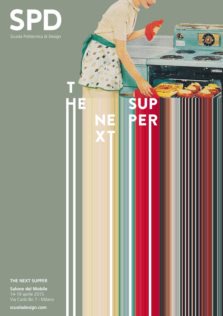 visual identity for the exhibition the next supper – retrofuturistic food concepts: logo, poster, installation, signage