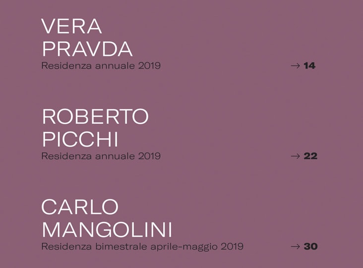 visual identity for the art contemporary projects of collezione permanente and residenze d’artista: logo, promotional materials, exhibithion catalogue